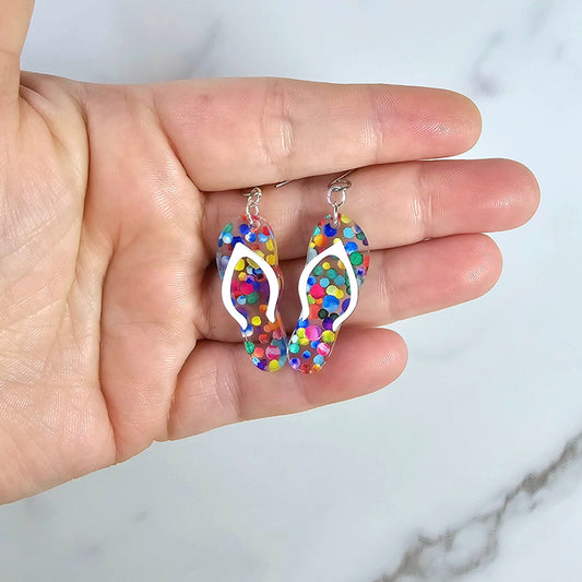 Polkadot Flip Flop Earrings, Summer Earrings, Beach Earrings, Rainbow Earrings, Gift for Her, Birthday Earrings, Vacation Earrings
