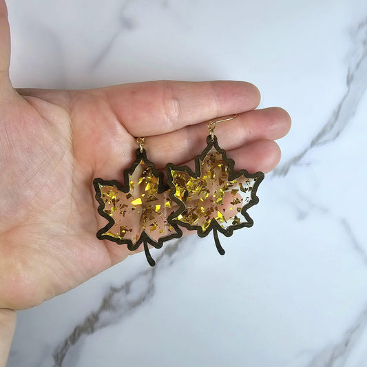 Leaf Inlay Earrings, Fall Earrings, Fall Dangles, Leaf Earrings, Unique Autumn Earrings, Gift for Wife, Daughter, Mom, Friend, or Coworker